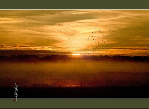 thấy bóng dáng chúng bay ở đâu trên đầu hay tận ngoài cơi xa. Với một chút kinh nghiệm bỏ túi, đánh hơi được thời điểm, tôi và anh Viết Mỹ, người cháu họ, hẹn nhau đi chụp h́nh vào sáng mai, Thứ Bảy 19-11. Thức dậy từ 05.30 AM, chúng tôi chuẩn bị thức ăn cho buổi điểm tâm và buổi trưa v́ dự định sau khi chụp sương mùa sẽ tiếp tục tới Lodi và Staten Insland chụp hạc, thiên nga và ngỗng trời. Tin tức khí tượng của đài Tivi địa phương cho biết mặt trời mọc vào lúc 06.45AM. Đúng 06.00AM chúng tôi lên xe v́ từ nhà tôi tới Cosumnes River Preserve, nơi chụp h́nh chỉ mất 20 phút. Dọc con đường Franklin Blvd, những cánh đồng chăn nuôi chạy dọc hai bên, sương mờ lăng đăng, không đậm đặc v́ ở đây chỉ có sự ẩm ướt của sương đêm và những cơn mưa rào chiều qua. Cảnh trí chung quanh báo hiệu cho biết sẽ có một buổi săn h́nh lư thú. Qua khỏi con cầu nhỏ, xe rẽ trái, khi vừa leo lên khỏi đường rầy xe lửa một không gian huyền hoặc hiện ra trước mắt, mặc dù chỗ này đối với chúng tôi không lạ lẫm ǵ. Lúc này từ phương Đông, ánh sáng đầu ngày vươn mạnh ra khỏi lớp mây tạo cho bầu trời và không gian đỏ rực. Tấp xe vào lề đường, chúng tôi vội vă xuống xe lấy máy, áo ấm, bao tay, mũ, back pack. Mỗi người chọn một chỗ đứng đủ cao, vừa đủ đặt máy, hướng máy về hướng Đông. Chúng tôi chọn bên lề đường rầy xe lửa, tuy chỉ cao hơn con lộ khoảng 5-6 feet, nhưng cảnh tượng sương mù bồng bềnh từ các đầm lầy, ruộng nước chung quanh cho tôi cảm giác như đang đứng trên vùng đồi núi cao mà mây mù đang trôi nổi dưới kia là cơi xa và xa lắm. Để thay đổi sự sáo ṃn và cũng để thử nghiệm, hôm nay tôi quyết định chụp phong cảnh với ống kính Tele. Bỗng tiếng xe lửa hụ c̣i từ phía xa, chúng tôi vội vàng xách máy dời xuống phía dưới một chút. Với tiếng c̣i và tiếng máy xe lửa những cánh chim từ đầm ruộng vụt bay lên. Những đàn vịt, hạc, ngỗng trời, như một nắm hạt mè đen được môt bàn tay vô h́nh văi tung vào không gian rồi cứ thế di động măi tận chân trời.