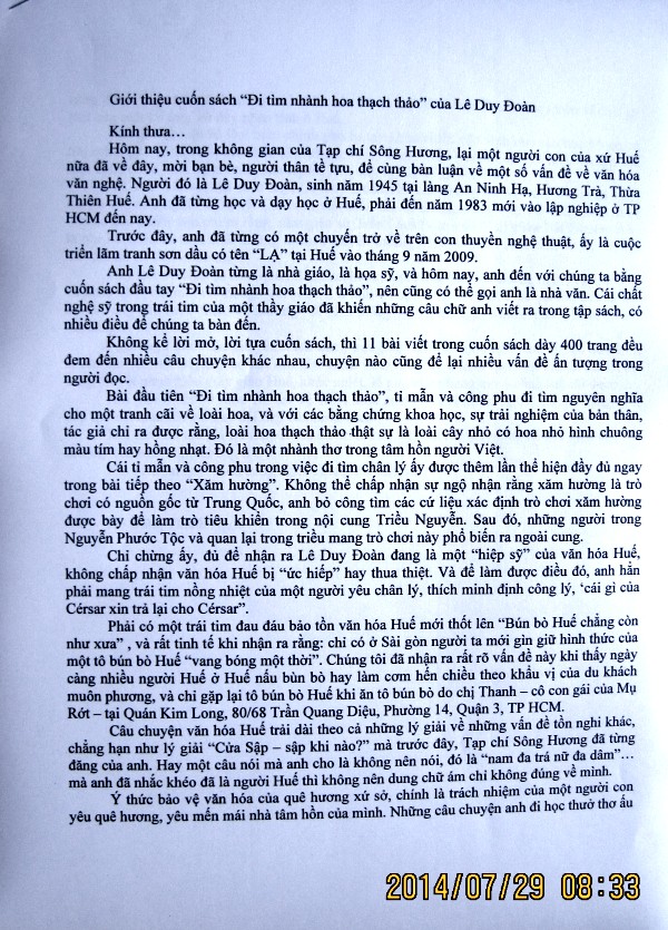 GIỚI THIỆU SÁCH "ĐI T̀M NHÀNH HOA THẠCH THẢO"