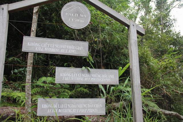 Chẳng hạn: "Không giết ǵ ngoài thời gian." Vậy là quí vị đừng giết các động vật và cả thực vật ở đây, có nghĩa là đừng săn bắn, đặt bẫy, đốn cây. "Không lấy ǵ ngoài những bức ảnh". Vậy th́ có gặp hoa đỗ quyên, hoa lan rừng quí vị cứ chụp h́nh, nhưng đừng tự tiện "rinh" về nghe! "Không để lại ǵ ngoài những dấu chân": quí vị đừng để lại chai, lọ, bao b́ thực phẩm nhé!