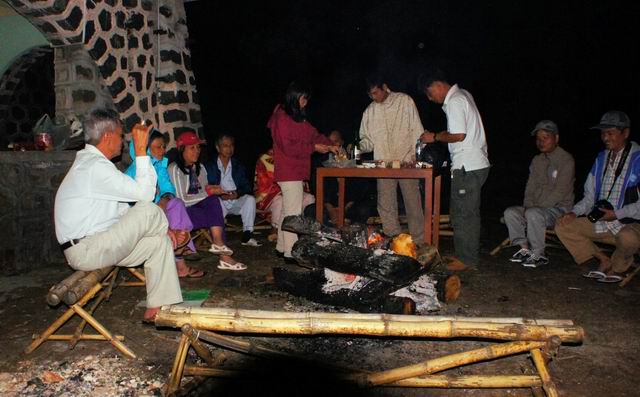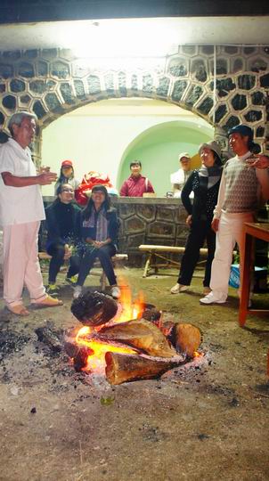 Sau bữa cơm tối, chúng tôi nghỉ ngơi đến 8:30 và bắt đầu chơi lửa trại ngay trước sân của biệt thự Đỗ Quyên.
