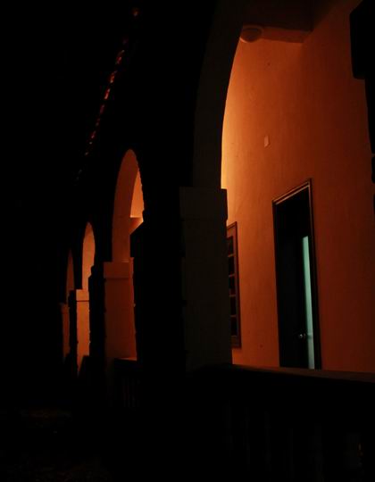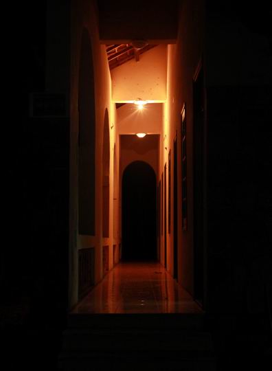 Du khách Bảo phải đi một đoạn đường dốc khoảng 100 m mới tới biệt thự Sao La. Không có đèn đường, chỉ có ánh sáng yếu ớt hắt ra từ biệt thự Bạch Mă. Anh du khách này đă đi ngang qua bậc cấp dẫn lên biệt thự mà không hay. Đến khúc quanh th́ con đường hoàn toàn tối mù. Anh du khách quyết định quay lại nhà hàng để mượn đèn pin. May thay, anh nhận ra bậc cấp lờ mờ và ṃ mẫm bước lên.
