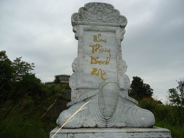 Gần tháp chuông là bia đá có rùa đội mang ḍng chữ Non Thiêng Bạch