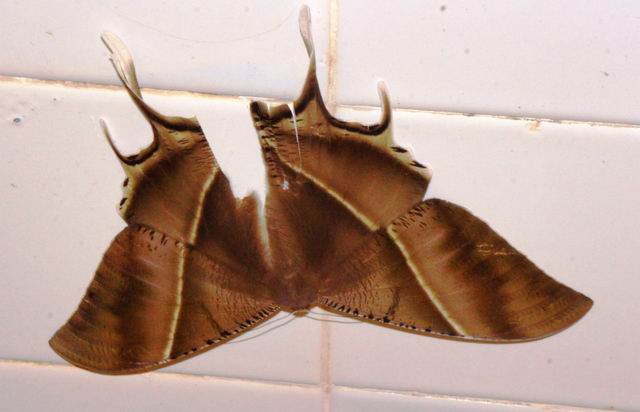 Một con bướm khác bám trên tường gạch men.