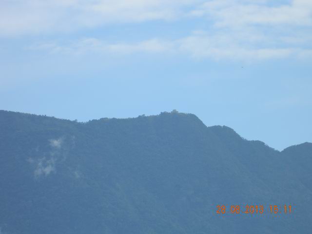 Lão Kongkong cố zoom máy để nhìn thấy rõ hơn. Vọng Hải đài ở trên đỉnh ngọn núi cao nhất.