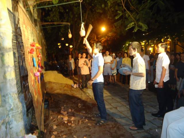 có một người cầm xập xỏa đập chan chát, làm náo động cả