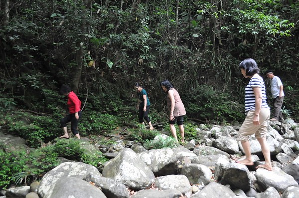 Phải bước đi trên đá hơi đau chân , ai cũng lom khom, cẩn thận.