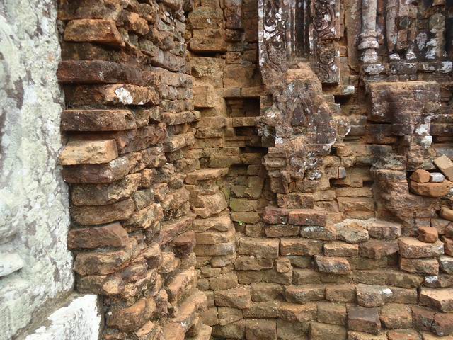 Thành tháp nhiều phần bị sứt mẻ để lộ