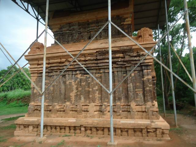 Có những ngôi tháp bị mất mái và người ta đă lợp lại bằng những tấm nhựa có phần trong suốt để ánh sáng chiếu vào, giúp khách du nh́n thấy những tranh, tượng ở bên trong.