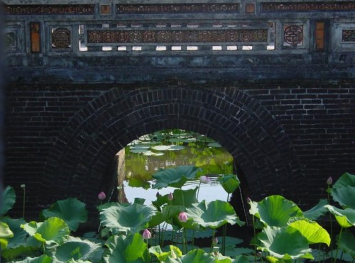 Đố em biết nơi nào Có thẹn thùng nón lá Cặp nghiêng nghiêng cầu sương tan Trắng mộng đầu