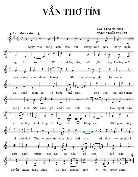 Thơ: Yên Dạ Thảo Phổ nhạc: Nguyễn Văn Thơ Hòa âm: Phan Thanh Hùng Ca sĩ: Trần Lệ