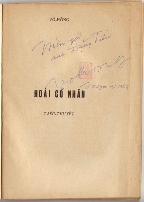 Vơ Hồng là người học rộng, sành tiếng Pháp, nhưng không mấy chịu ảnh hưởng các trào lưu thế giới đang thịnh hành. Ông rất thân với Phạm công Thiện : người bạn vong niên này liên miên đề xuất các tác giả bốn bể năm châu, th́ Vơ Hồng chỉ nghiền ngẫm một cuốn Clémentine của Anatole France. Thời gian này, sách báo ngoại quốc tràn ngập trên thị trường miền Nam, thời thượng là những Sartre, Malraux, Bùi Giáng dịch Camus, Vơ Phiến dịch Stefan Zweig, Dostoievski, Nguyễn Hiến Lê dịch Somerset Maugham. Riêng Vơ Hồng là con thuyền cắm sào ngoài ḍng thời đại. Cùng một nghề dạy học, nhưng Vơ Hồng có chút ǵ lạc lơng so với các đồng nghiệp Doăn Quốc Sỹ, hay Nhật Tiến, ba nhà văn nổi tiếng là nhà giáo hiền lành… Ở đây, chúng tôi chỉ so sánh những cái có thể so sánh được, chứ không đặt Vơ Hồng vào toàn cảnh Văn Học Miền Nam. Nhiều nhà giáo viết văn, nhưng Thanh Tâm Tuyền không viết văn trong tư cách nhà giáo, ngược lại với Vơ Hồng. Tác giả Hoài cố nhân luôn luôn tề chỉnh, đạo mạo. Văn phong mô phạm có khi làm trở ngại cho danh vọng văn học.
