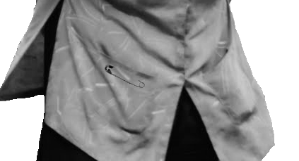 ở trong nhà. Áo có may hai túi lớn, túi bên phải ghim chặt cái kim băng.