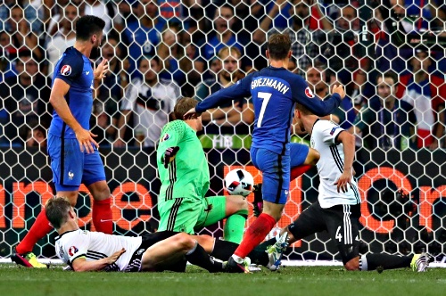 gáy át tiếng bom). Một ḿnh Antoine Griezmann, người hùng chỉ cao 1m76,