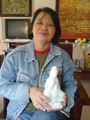 Đọc thư cô Trang Mỹ xong, Tâm - Huệ nói với ông xă: - Chừ xong công việc rồi, em đi t́m pho tượng Phật Quan Âm giúp cô giáo em. Cô có nhờ. - Ừ, em đi nhanh về nhé, mặc áo khoác vào kẻo lạnh! Tâm-Huệ dạo quanh các cửa hàng đá Non Nước để thỉnh pho tượng Phật Bà theo đúng ư của cô giáo Trang Mỹ. Thành phố Đà Nẵng có làng đá mỹ nghệ Non Nước lừng danh khắp cả nước. Các nghệ nhân tạc đá rất có thần, đẹp, đá tốt nên được khắp nơi ưa chuộng. Ai ngang qua thành phố sông Hàn cũng mua vài xâu chuổi đá làm quà cho các mẹ, chị, em gái. Có người bưng cặp sư tử đá trắng tặng những người lớn tuổi, họ rất thích. Những người theo đạo Phật không quên thỉnh pho Quan Âm hay tượng Thích Ca để thờ hay đặt trên bàn làm việc cho trang nghiêm và được hưởng chút lộc từ bi! Tâm-Huệ xem xét cẩn thận, t́m một pho tượng tạc có hồn, mặt tượng tươi vui… Huệ nhủ thầm: “ Để hỏi lại cô cho kỹ, cô có thích tượng Bà đứng trên ṭa sen không? Là v́ tượng Phật Bà đứng trên ṭa sen rất đẹp, có điều kích cỡ hơi lớn, sợ mang ra nước ngoài cồng kềnh”. Huệ đem dấu pho tượng ưng ư vào góc tường, sợ khách đến thấy đẹp, họ cầm mất, rồi ra về. Cô chủ tiệm hỏi: - Không vừa ư cô à? - Có chớ, nhưng tôi t́m tượng giúp người khác, để tôi về hỏi lại đă nhé! Ngày 23 âm lịch tháng chạp nhà nhà cúng tất niên, người đi lại đông nườm nượp, xe cộ nối đuôi nhau qua cầu sông Hàn. Len lỏi một lúc rồi cũng về thấu nhà. Nghe Huệ kể chuyện, ông xă bảo : - Em lo thỉnh sớm đi, để lâu sợ hết tượng đẹp. Hết tháng giêng thợ mới đục đá trở lại. Tâm - Huệ lo lo trong bụng nhưng nhớ cửa hàng có gần hai chục pho, làm chi mà hết. Thôi, mai đi thỉnh cho rồi, ông xă nói đúng. Tối hôm đó, Huệ gọi thử điện thoại cho người cháu cô Trang Mỹ, may quá lần này gọi được. Người cháu hỏi Huệ : - Ủa, làm răng mà cô tôi nhờ chị thỉnh tượng rứa, chị hay đi chùa hả ? - Tui ở Đà Nẵng mà, tui là học tṛ cũ của cô, cũng hay đi chùa nữa. Ờ, mà chắc cũng có duyên chi đó... Tui không biết nữa. Ờ... tháng 2 âm lịch, tui đem tượng ra nghe. Tui sẽ gọi điện trước để bạn ở nhà nhận tượng.