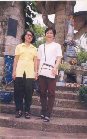Huệ-Tâm và Bích Thu viếng Đức Mẹ ở Trà Kiệu (Quảng Nam)