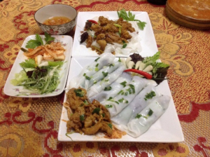 -Khi hết dịch th́ Ánh làm cho ăn! Nghe cũng mừng, ráng dành bụng chờ! Bữa nào không ăn bánh canh gị th́ ăn cơm Tấm và bánh bèo, bánh nậm, lọc. Ui chao, mùa dịch Covid thấy mấy món Huế này càng nuốt nước miếng. Tôi ăn “giỏi” nhưng tay không khéo nên ít làm! Món nào cũng khoái khẩu cả.