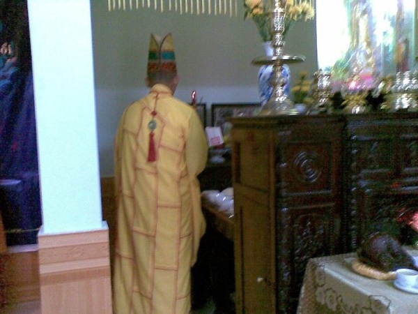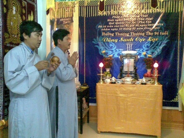 đang tụng niệm trong ngày làm tuần thứ 6 Thân mẫu: Nguyễn