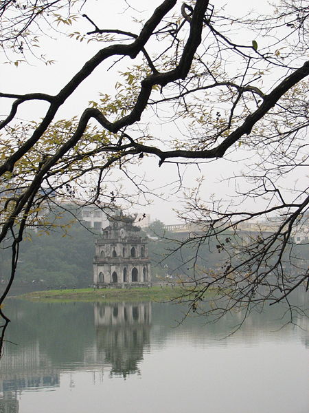 Hồ Gươm mờ khói toả phủ hơi sương,