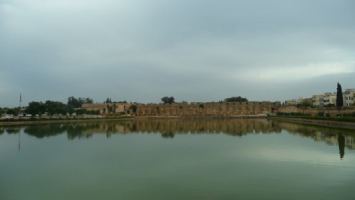 Cổng Bab Mansour và Place el Hédime, Meknés Ngoại ô Meknés có một phế tích: kho lúa Heri es-Souani. V́ bạo ngược và hiếu chiến, đương nhiên tiểu vương Moulay Ismail phải tính kế pḥng bị bằng cách xây một kho lúa đủ ăn cho quân lính và luôn cả 12.000 con ngựa trong nhiều chục năm. Kho lúa được xây đơn giản nhưng kiên cố, có kiến trúc với những bức tường dày gần thước giữ được độ mát cần thiết quanh năm, phía sau là tàu ngựa ngăn nắp cho đội kỵ mă. Nước được lấy từ chiếc hồ lớn trước mặt. Nhưng loạn không đến từ ngoài mà từ trong triều, đó là điều mà ông không tiên liệu được.