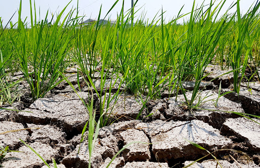 cánh đồng chỉ còn trơ những vết nứt tổ ong
