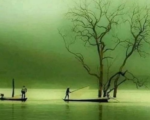 Nước bạc lung linh gợn sớm mai