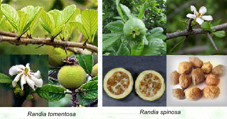 gàng tu hú Randia spinosa (spinosa: gai), lá dày h́nh bầu dục,