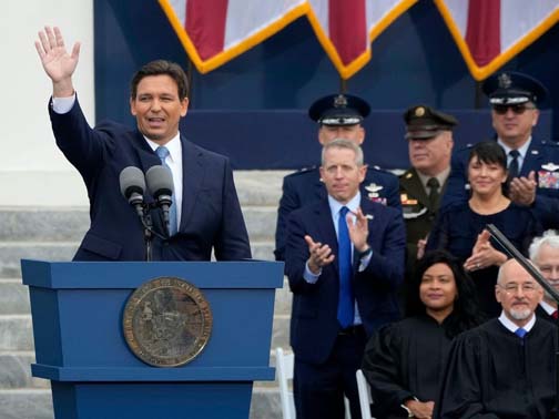 Ron DeSantis trong buổi lễ tuyện thệ nhậm chức thống đốc Florida nhiệm kỳ II (Ảnh: Lynne Sladky/AP)