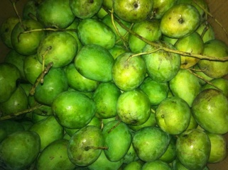 Trái tròn và nhỏ. Trái xoài muỗm không được truyền tụng nhưng gỗ cây xoài muỗm