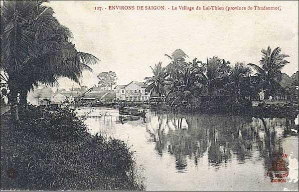 **** Lái Thiêu là một quận ở cực nam tỉnh Thủ Dầu Một (Bình Dương). Địa danh phát xuất từ chuyện một ông lái buôn tự thiêu mà ra. Đó là một quận trù phú trong tỉnh Thủ Dầu Một (Bình Dương). Dưới thời Pháp thuộc quận trưởng là người Pháp. Viên quận trưởng cuối cùng người Pháp là Ferdinand de Larris, tốt nghiệp École Nationale d’Administration của Pháp. Ông đổi về làm quận trưởng Cao Lãnh, tỉnh Sa Đéc, và bị giết chết ở đó. Dưới thời quốc trưởng Bảo Đại, đốc phủ Lương Sơ Khai được bổ nhiệm về làm quận trưởng. Trong những năm đầu sau ngày đất nước qua phân, chức vụ quận trưởng vẫn do các nhà hành chánh dân sự nắm giữ. Từ năm 1961 về sau chức vụ quận trưởng do các quân nhân nắm giữ. Ông Nguyễn Thành Tiết là quận trưởng dân sự cuối cùng ở Lái Thiêu. Ông được làm phó tỉnh trưởng tỉnh Phước Thành và bị giết chết cùng thiếu tá tỉnh trưởng Trần Minh Mẫn khi tỉnh này bị Cộng Sản tấn công năm 1961. Về sau tỉnh Phước Thành giải thể và trở thành quận Phú Giáo thuộc tỉnh Bình Dương. Quận Lái Thiêu có 11 xã. Đó là: Tân Thới, Phú Long, Vĩnh Phú, Bình Nhâm, Bình Hoà, An Phú, Hưng Định, An Thạnh ( Búng), An Sơn, Thuận Giao và Bình Chuẩn.