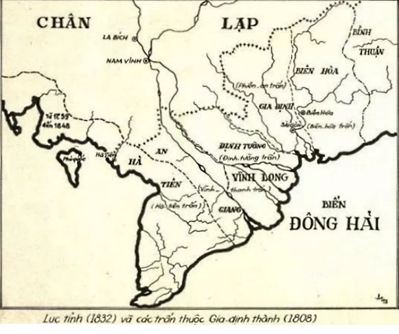 Pháp). Hành Chánh & Chánh Trị Dưới triều vua Gia Long Gia Định Thành có ngũ trấn: Biên Trấn (Biên Hòa), Phiên Trấn (Gia Định), Định Trấn (Định Tường- Mỹ Tho), Vĩnh Trấn (Vĩnh Long) và Hà Trấn (Hà Tiên). Gia Định Thành có các tổng trấn: Nguyễn Văn Trương: 1805 Nguyễn Văn Nhơn: 1808- 1810; 1819- 1820 Trương Tấn Bửu: 1810- 1812 Lê Văn Duyệt: 1812- 1815; 1820- 1832 Nguyễn Huỳnh Đức: 1815- 1819 Năm 1833 chức tổng trấn Gia Định Thành không còn nữa. Các Trấn được đổi thành Tỉnh. Ngũ trấn trở thành ngũ tỉnh. Một tỉnh mới được thành lập. Đó là tỉnh An Giang (Long Xuyên). Từ đó có Nam Kỳ Lục Tỉnh (Biên Hòa, Gia Định, Định Tường, Vĩnh Long, An Giang, Hà Tiên). Đứng đầu mỗi tỉnh có một tổng đốc. Đơn vị hành chánh dưới tỉnh là phủ và huyện đứng đầu bởi tri phủ và tri huyện. Dưới huyện là xã do lý trưởng đứng đầu. Xã được hưởng sự tự trị xã thôn như đã có từ xưa trong lịch sử hành chánh Việt Nam. Do đó có câu: Phép vua thua lệ làng. Năm 1862 ba tỉnh Biên Hòa, Gia Định và Định Tường mất vào tay người Pháp. Năm 1867 Pháp chiếm luôn ba tỉnh miền Tây Nam Kỳ: Vĩnh Long, An Giang và Hà Tiên. Tổ chức hành chánh Việt Nam bị xóa ở Nam Kỳ. Những chức vụ tổng đốc, tri phủ, tri huyện không còn nữa. Nam Kỳ Lục Tỉnh được chia ra làm 21 tỉnh (province). Dưới tỉnh là quận (délégation), tổng (canton) và xã (commune). Các chánh tham biện (tỉnh trưởng- Chef de province) đều là người Pháp. Khi mới chiếm Nam Kỳ các tỉnh tân lập do các Thanh Tra Bản Xứ Vụ (Inspecteur des Affaires Indigènes) là các sĩ quan Hải Quân Pháp đảm nhận. Chức vụ hành chánh cao nhất của các đốc phủ sứ Việt Nam là quận trưởng (délégué). Các chức vụ cai tổng, xã trưởng đều do người địa phương nắm giữ. Trông coi việc cai trị ở Nam Kỳ có một viên thống đốc người Pháp. Khi mới chiếm Nam Kỳ các thống đốc đều là các tướng lãnh Hải Quân Pháp nắm giữ. Năm 1879 Le Myre de Villers là viên thống đốc dân sự đầu tiên ở Nam Kỳ. Dinh thống đốc là Dinh Gia Long sau này. Hiệp ước 1874 chính thức nhìn nhận Nam Kỳ là thuộc địa của. Pháp. Những danh chức Tổng Đốc như tổng đốc Phương (Đỗ Hữu Phương), tổng đốc Lộc (Trần Bá Lộc) hay Huyện như Huyện Sĩ đều là những danh chức danh dự (honoraire) vì những chức vị này hoàn toàn không còn nữa vào cuối thế kỷ XIX ở Nam Kỳ. Nam Kỳ nhập tịch Việt Nam không bao lâu thì vùng tân thổ nầy chứng kiến cuộc nội chiến giữa họ Nguyễn và nhà Tây Sơn rồi sự xâm lăng của người Pháp. Sự hiểm nguy và gian khổ trui rèn con người. Nam Kỳ sớm sản sinh ra những trụ cột dựng lên triều Nguyễn như Lê Văn Duyệt, Nguyễn Huỳnh Đức, Hồ Văn Vui (Hồ Văn Bôi), Lê Văn Đức, Võ Tánh, Trương Tấn Bửu, Nguyễn Văn Thoại, Trương Minh Giảng, Phạm Đăng Hưng, Phan Thanh Giản v.v. Lê Văn Duyệt (1763- 1832) là Tả Quan Đô Thống, một khai quốc công thần của nhà Nguyễn. Ông là tổng trấn Gia Định Thành hai lần. Ông có sáng kiến đào kinh Vĩnh Tế nối liền sông Hậu Giang từ Châu Đốc đến Hà Tiên trên Vịnh Thái Lan. Tiền quân Nguyễn Huỳnh Đức (1748- 1819), tước Công, được giữ chức tổng trấn Bắc Thành và Gia Định Thành. Vua Gia Long rất mến tài quân sự và sự trung thành của ông nên cho phép ông cải họ HUỲNH ra họ Nguyễn (Tên cũ: Huỳnh Tường Đức. Tên mới: Nguyễn Huỳnh Đức). Thống chế Hồ Văn Vui hay Hồ Văn Bôi (?- 1804) được phong tước Công dưới triều vua Thiệu Trị. Thống chế Hồ Văn Vui là ông ngoại của vua Thiệu Trị. Thống chế Nguyễn Văn Nhơn (1753- 1822) là tổng trấn Gia Định Thành hai lần. Trung quân Đô Thống Trương Tấn Bửu (1752- 1827) được phong tước Hầu. Ông thay thế Nguyễn Văn Thành và từng là tổng trấn Gia Định Thành. Ông Lê Văn Đức (1793- 1842) đậu cử nhân dưới triều vua Minh Mạng và được bổ làm tri huyện. Nhưng ông có năng khiếu quân sự nên lập được nhiều chiến công trong việc dẹp loạn ở Bắc Thành (Bắc Kỳ), ở Chân Lạp, đánh bại quân Xiêm can thiệp vào Chân Lạp. Chân Lạp được Trương Minh Giảng đổi thành Trấn Tây Thành năm 1835. Năm 1841 vua Thiệu Trị bổ nhiệm Lê Văn Đức làm thượng thơ bộ Binh. Ông Trương Minh Giảng (?- 1841) là con của thượng thơ bộ Lễ Trương Minh Thành. Ông đậu cử nhân năm 1819. Nhưng ông có nhiều chiến công quân sự khi đánh dẹp cuộc nổi dậy của Lê Văn Khôi (1833- 1835), cuộc nổi dậy ở Chân Lạp và đánh bại quân Xiêm can thiệp vào Chân Lạp và cuộc nổi dậy của Lê Văn Khôi. Trương Minh Giảng thiết lập nền bảo hộ ở Chân Lạp. Chân Lạp được cải thành Trấn Tây Thành (1835). Ông mất năm 1841 sau khi vua Thiệu Trị ra lịnh rút quân khỏi Trấn Tây Thành. Võ Tánh (1768- 1801) là một trong Tam Hùng Gia Định (Đỗ Thanh Nhân, Châu Văn Tiếp và Võ Tánh). Ông là em rể của Nguyễn Phúc Ánh. Ông được thụy phong tước Công, một trong những người miền Nam trụ cột của triều Nguyễn. Ông mất trước khi Nguyễn Ánh lên ngôi. Phạm Đăng Hưng (17