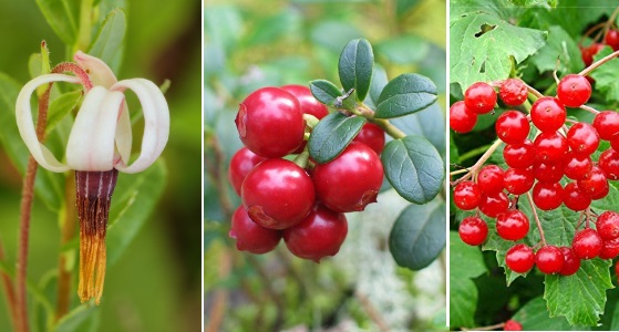 Chúng tôi không dịch trái cranberry ra Việt ngữ v́ loại trái này không có ở Việt Nam nhưng có rất nhiều ở Bắc Mỹ, Âu Châu. Nếu dịch theo Hoa ngữ Suan guo man (toan quả măn- cây quả chua) th́ người Việt Nam cũng không biết là trái ǵ? Trái cóc, trái chùm ruột, trái khế, trái xoài xanh…đều chua! V́ vậy chúng tôi giữ tên tiếng Anh Cranberry cho dễ hiểu và dễ t́m kiếm. Tên khoa học của trái cranberry là Vaccinium macrocarpon thuộc gia đ́nh Ericaceae. (Macro: lớn; carpus: trái), nhưng trái cranberry nhỏ bằng đầu ngón tay út. Tên gọi thông thường: