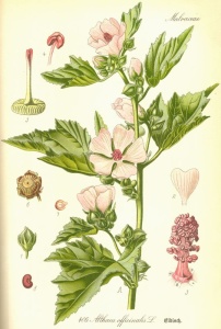 Thục quì là thân thuộc của cây bông bụp nhưng đó là loài thảo mộc thường mọc theo các đầm nước mặn, đầm lầy, bờ sông, bờ đê ở Bắc Âu. Cây thục quì cao từ 1- 2 m. Thân cây nhỏ và có sớ dài. Lá thục quì màu xanh nhạt và có lông thật mịn. Quanh rìa lá có răng cưa như là bông bụp. Hoa màu trắng đục với 05 cánh như bông bụp nhưng nhỏ hơn. Tên khoa học của thục quì là Althaea officinalis thuộc gia đình Malvaceae. Tên thông thường là: