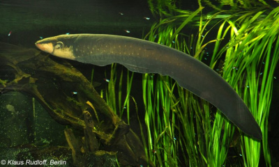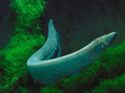 Lươn nuôi trong hồ. Nam Thiện Ngư Phi Châu dài 1,5m, nữ dài 1,2m. Trọng lượng