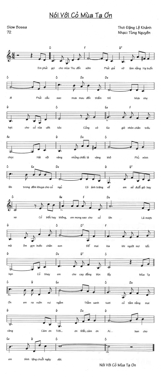Mùa Tạ Ơn, Em ra vườn vui ngắm Cỏ xanh tươi nằm tắm nắng ban mai Em cám ơn Trời, cám ơn Đất, cám ơn Ai Đã thương tặng một ngày dài bình lặng