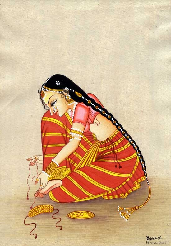 Có một cô gái hằng ngày đến lấy nước nơi nguồn suối thiên đường. Âm thanh mỗi bước chân của nàng nghe giống như những nốt nhạc líu ríu đuổi nhau trên chiếc đàn thùng sitar. Tóc nàng được kết thành bím rất gọn, thế mà vẫn có những sợi tóc lại tự động chui ra khỏi mối, x̣a xuống trước trán nàng như thể để được thoáng nh́n đôi mắt nàng đen nhánh, đẹp long lanh. Cái anh chàng lang thang th́ đang đứng gần đó, im sững như một thân cây bên cạnh ngọn suối nguồn lặng lờ. Cô gái cảm thấy thương hại chàng ta quá, y như nàng công chúa chợt thấy một kẻ ăn xin khi nh́n qua cửa sổ ḥang cung. “Tội chưa! Ông không có việc ǵ làm ư?” Chàng thở dài sườn sượt mà nói: "Tôi không có th́ giờ dành cho việc làm!". Cô gái không hiểu được ư chàng. Nàng hỏi: "Ông có muốn làm việc không? Em có thể đưa việc cho ông làm". Chàng đáp: “Có chứ, tôi muốn làm việc do chính tay cô đưa. V́ vậy mà tôi chờ ở đây.” “Ông muốn làm việc ǵ?” “Tôi tự hỏi không biết cô có cho tôi mượn một trong mấy cái b́nh mà cô chứa nước chăng.” “Ông làm ǵ với mấy b́nh ấy? Muốn đi khiêng nước à?“ “Ồ không. Tôi muốn vẽ h́nh lên đó. “ Cô gái cảm thấy bực ḿnh. Nàng nói: “Em không có nhiều th́ giờ. Em phải đi đây”. Thế nhưng kẻ bận việc làm sao căi cho lại kẻ rỗi việc. Ngày nào họ cũng gặp nhau gần nơi con suối, và ngày nào chàng ta cũng chỉ nói có một điều ấy thôi. “Sao cô không cho tôi mượn cái b́nh, tôi muốn vẽ tranh lên đó.” Cô gái chịu thua. Nàng đưa cho chàng cái b́nh nước. Chàng bắt đầu vẽ quanh chiếc b́nh --- những tảng mầu thật đẹp, những nét cong thật xinh. Khi chàng vẽ xong, cô gái nhấc chiếc b́nh lên. Nàng cầm nó trong tay, xoay đủ hướng ngắm nghía. Xong, nàng cau mày nói, “Cái này có nghĩa ǵ?” Chàng đáp “Chẳng có nghĩa ǵ hết“. Nàng ra về với chiếc b́nh của nàng. Mỗi khi không có ai chung quanh, nàng lại ngắm chiếc b́nh. Nàng nh́n hết góc này đến góc khác, đủ mọi độ ánh sáng. Những lúc mọi người đă ngủ say, nàng lần ra khỏi giường, thắp ngọn đèn lên, và ngồi yên lặng trước chiếc b́nh. Đây là vật đầu tiên nàng thấy trong đời chẳng mang một ư nghĩa nào cả. Ngày hôm sau, khi nàng đi đến chỗ suối nước, nàng không đi vội như trước. Đôi chân nàng bước lững thững, như thể chúng đang suy tư về một điều ǵ đó, một điều chẳng cần mang một ư nghĩa ǵ hết. Chàng vẫn đứng bên cạnh gịng suối như bao giờ. Cô gái hỏi : “Ông muốn ǵ?“ Chàng đáp, “Tôi muốn làm việc khác cho cô “. “Việc ǵ?” "Nếu cô muốn, tôi có thể dệt những sợi đủ màu sắc, và làm dây cho cô kết lên tóc." "Như thế để làm ǵ?'' “Chẳng làm ǵ cả.” Chẳng bao lâu, những dây băng, đủ màu, đủ kiểu được hoàn thành. Từ đó, cô gái tốn nhiều thời giờ hơn trước gương soi để kết bím tóc. Cứ thế, giờ này chồng chất giờ khác, và công việc bị để bừa ra chẳng xong...