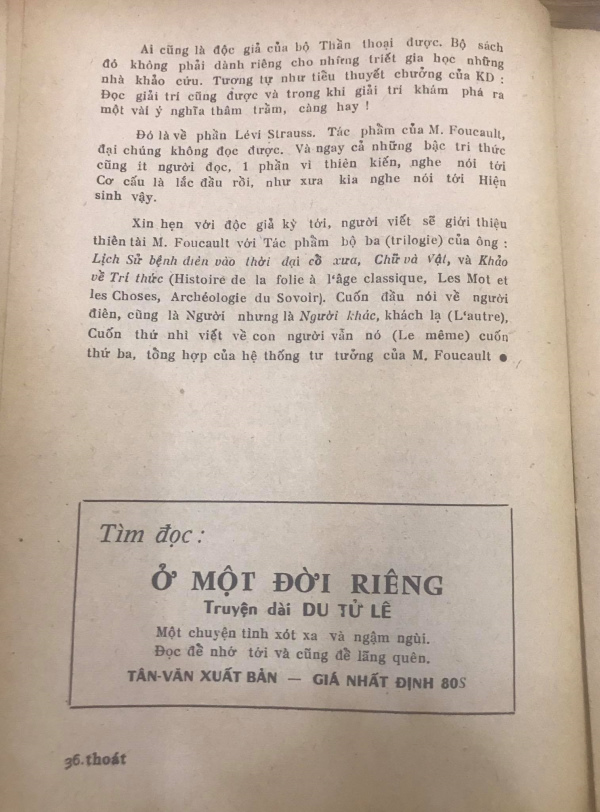 Foucault. NGUYỄN QUỐC TRỤ (Tập san Thoát số 19, trang 33-36 )