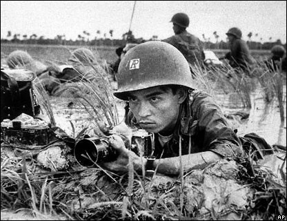 Trong số những kư giả, phóng viên chiến trường chết tại Việt Nam, Huỳnh Thành Mỹ (1) là người đầu tiên, và được nhắc nhở nhiều nhất, ít ra cũng giữa đám đồng nghiệp tại hăng AP. Cuộc chiến khi đó tương đối c̣n sớm sủa, nếu chỉ tính về con số tử vong. Thần Chết c̣n mải thăm ḍ con mồi, chưa lựa chọn nạn nhân giữa đám người lăng xăng với cái máy chụp h́nh, cái camera, cuốn sổ tay, như thể ba thứ đồ linh tinh, cộng thêm mớ dây nhợ lằng nhằng, kể luôn cả hai chữ báo chí, Press, gắn trước ngực, là những bùa trừ tà, súng đạn phải tránh né.