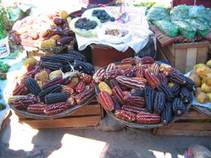 Bên cạnh khoai tây là rất nhiều giống băp, có giống màu tím đậm, có giống màu đen. Hạt băp rất lớn, ông tua gai cho du khách xem một hột băp lớn gần 2cm, dày khỏan 2-3 mm. Trong các nhà hàng có dọn một loại jello làm từ trái băp đen. Trái cây gồm cả các loại trái nhiệt đới như đu đủ, xoài, măng cầu xiêm, dừa, chuối cùng những loại trái riêng có ở Peru như vài h́nh ảnh mà tôi ghi được như sau: