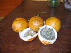 H́nh bên trái la` trái granadille, tôi không rơ tên trái cây trong h́nh bên phải, chỉ nhớ nó rất thơm. Rủi là khi chúng tôi đến viếng trang trại, trái này chưa được chín nên chưa có dịp nếm.