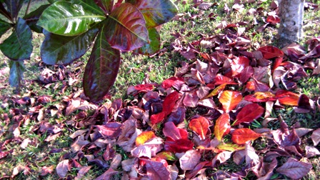 Thu gom mười sáu bịch lá rụng, mỗi bịch cả 32 pounds. Mặt đất còn lổm chổm vài viên sỏi nhỏ chen nhiều trái bàng, trái xanh trái vàng trái nâu, trái tươi trái héo trái khô, trái vỡ trái lành. Những trái này dành cho chàng Đông Phương Sóc đang bám trên thân tùng, cong chiếc đuôi xù chong mắt đứng đợi được phần chia sẻ.