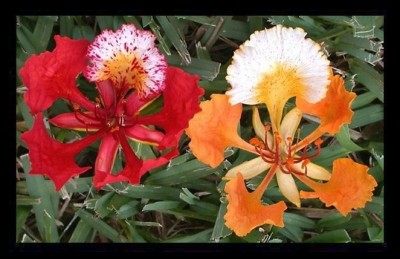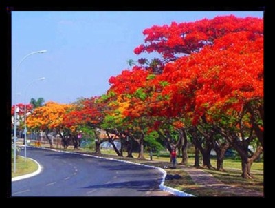 Con đường trong hình trên cho thấy Phượng Vàng. Loại hoa vàng này có tên khoa học là Delonia regia var Flavida, khó trồng và ít hoa hơn Phượng đỏ, hoa toàn màu vàng nhưng cánh cờ lại trắng lốm đốm vàng, rất lạ.