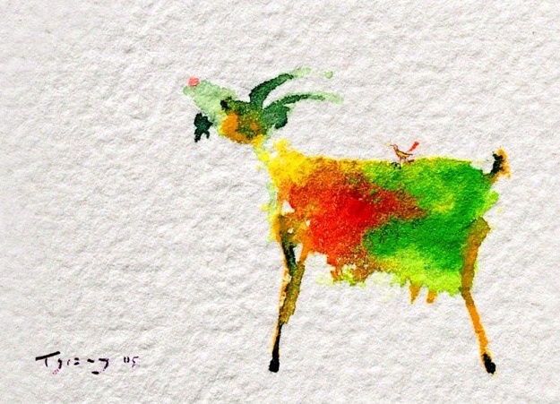 ảnh tranh Dê tươi mát bảy sắc cầu vồng của họa sĩ Đinh Trường Giang con