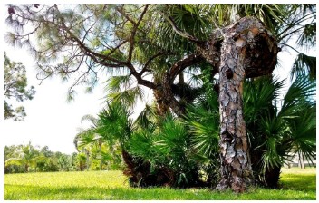 Kè rẽ quạt Saw Palmetto kề cận thông Slash Pine thân