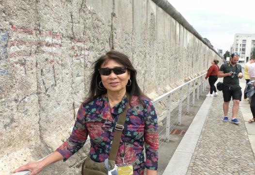 Thuhương được sờ tay vào bức tường tội ác Ber-lin tháng Bảy 2019.