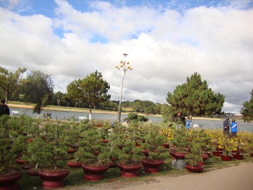 Những ngày giáp Tết Con Mèo, chịu ảnh hưởng của không khí lạnh từ miền bắc tràn về, Đà Lạt lạnh hơn mọi năm. Bầu trời chưa thực trong xanh vời vợi, nắng chưa đủ ấm v́ những đám mây xám âm u ẩn hiện, gió quật tơi bời cây lá nhưng mọi người vẫn xôn xao chuẩn bị Tết. Mọi thứ hàng hóa, đặc biệt là quần áo, rau trái và các mặt hàng phục vụ tết được bầy ra đầy kín những con đường vào các chợ. Những người buôn bán nhỏ vô cùng vất vả nhưng cũng là dịp để kiếm thêm ít tiền trong những ngày năm cùng tháng tận. Các khu chợ hoa xuất hiện ven hồ Xuân Hương không phải chỉ với hoa Đà lạt mà c̣n hoa và cây trái miền Nam đưa lên. Sắc vàng hoa mai chan ḥa với sắc hồng mai anh đào và vô vàn sắc màu của ngàn hoa Đà Lạt.
