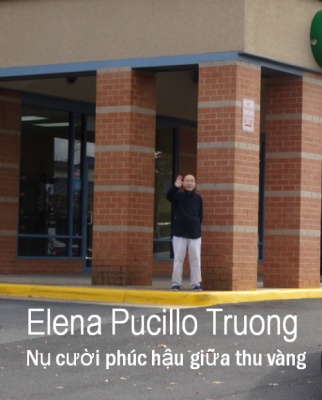 Đinh Cường - Elena - Ảnh PCH - Virginia, 21.10.2015 Thăm hỏi nhau một lát rồi anh dẫn chúng tôi đi vào pḥng tranh. Tôi có cảm giác là ḿnh vừa bước vào bên trong một chiếc hộp kỳ bí: những khung vải với vài nét vẽ khởi đầu đặt bên những bức tranh vừa hoàn chỉnh, như bức tranh c̣n đặt trên giá gỗ, cạnh những cây cọ và những hộp sơn. Có những nét vẽ lạnh, màu trắng, xám trộn lẫn với màu xanh dương nhưng cũng có bức vẽ bằng màu nóng, như đỏ, nâu và vàng. Đó chính là màu của những chiếc lá nh́n qua cửa kính từ mái hiên mở ra khu rừng phía bên ngoài. Trong một thoáng, tôi có cảm giác là ḿnh vừa bước vào một ngôi đền, hay đúng hơn, một ngôi chùa trong đó có vị thiền sư đang diễn tả ơn gọi của ḿnh qua những bức tranh. Làm bạn với anh là những pho tượng Phật đang nhập định, những quyển sách mà anh đă viết về văn học và nghệ thuật, vài tác phẩm của thiền sư Thích Nhất Hạnh, và nhiều quyển sách dày nói về các danh họa như Modigliani, Van Gogh. Tôi c̣n nh́n thấy một bản “Le Petit Prince” của Saint-Exupery bằng tiếng Pháp. Những đồ vật chung quanh thường thầm lặng nói về ta, từ sự riêng tư hay hiểu biết sâu sắc về hội họa, về giá trị của ḷng tôn kính hay về những mối quan hệ bạn bè thân thiết.. và đó là điều mà tôi cảm nhận rơ ràng khi bước vào pḥng tranh của anh. Có những bức h́nh của những người thân, mẹ anh hay các cháu đang nô đùa. Những bức h́nh khác là những nụ cười hiền ḥa của anh bên cạnh vài người bạn thân thiết trong đời, như cố nhạc sĩ Trịnh Công Sơn với điếu thuốc không thể thiếu giữa hai kẽ tay, Bùi Giáng với đôi mắt tinh anh và sống động đặt bên cạnh khuôn mặt trầm tư của danh họa Picasso. Tôi nh́n những khuôn mặt đó và khám phá ra tất cả đều có nét vui tươi. Đó là những nụ cười thân thiện, hiền ḥa và đầy sức sống. Cũng giống như nụ cười phúc hậu mà Đinh Cường đă chào đón tôi và các bạn từ phương xa vừa đến thăm anh.