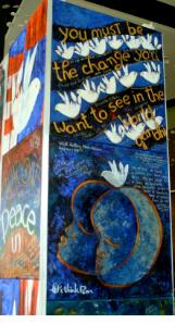 core of contemplating war and "thinking peace." Huong has been invited by many people around the country to bring this mural so that people can sign on for peace and make a difference. Just imagine if this mural could travel to every state, have a place to set up and encourage the citizens of our country to write their thoughts and beliefs, and to add their art to that of others. We could have a mural to embrace our country, our mandate for Peace.