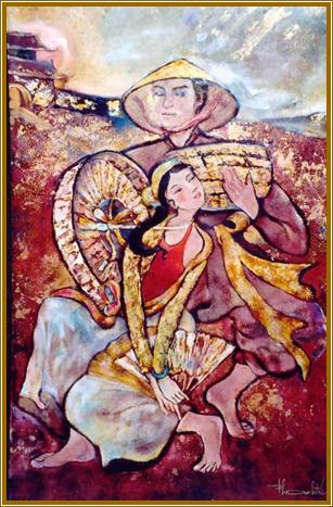 Chợ Tết (hai cô Nam Kỳ bán dưa hấu) Oil painting on canvas Artist Thanh Trí