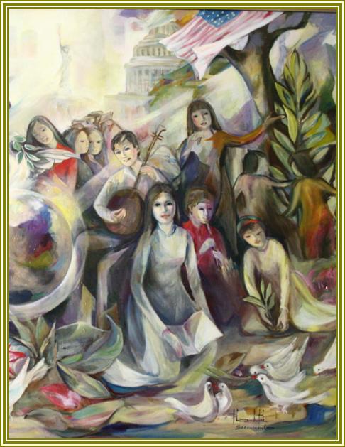 “ Ngày xuân Người Việt thế hệ thứ ba ở Thủ Phủ California Sacramento “ Tiếng hát hoà b́nh từ miền đất Hứa Peaceful Music on Sweetland Artist Thanh Trí - Oil on canvas- Sacramento