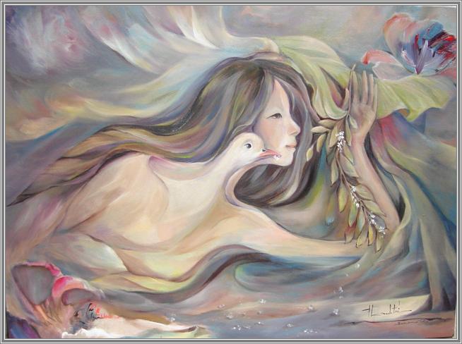 Lady Dove Nữ Vương Hoà B́nh Thanh Trí – oil painting 30”x40”